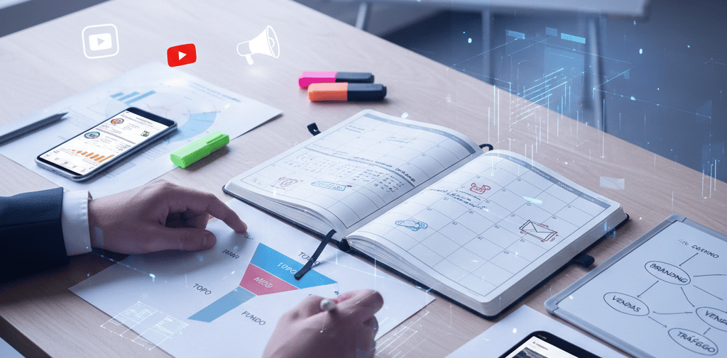 Fundo de Funil (Conversão): Prova social, depoimentos de clientes, demonstração de produto e chamadas para ação (CTA) claras. É a hora de pedir a venda.